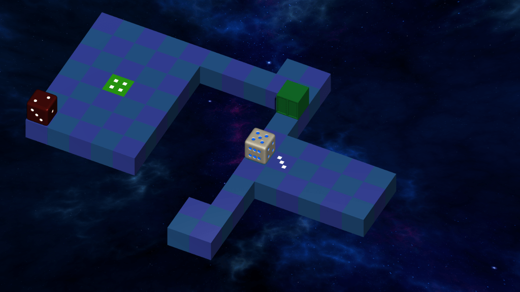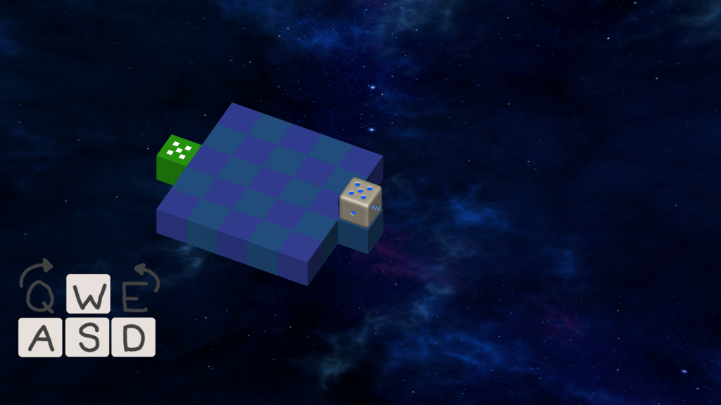 The current value facing up was calculated with direction vectors and the values of adjacent dice were compared. - Camera Rotation and Controls